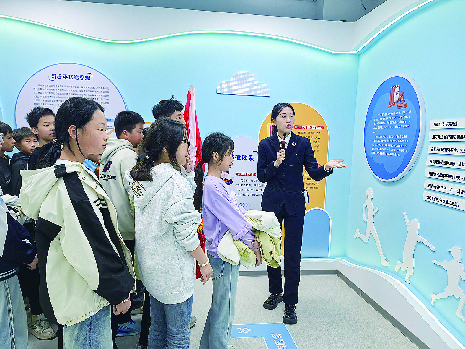 活动伊始,同学们在检察干警的引导下,有序参观了攸县青少年法治教育中心。展厅内丰富的图文展板、生动的案例解析以及现代化的多媒体互动设备,瞬间吸引了所有人的目光。检察干警用通俗易懂的语言,向同学们介绍了检察院的职能、法律的基本概念,并结合与青少年学习生活息息相关的典型案例,深入浅出地讲解了预防校园欺凌、防范网络诈骗、抵制不良诱惑等法律知识。在互动体验区,同学们兴致勃勃地参与了法律知识抢答、法律图画拼图、法治小剧场等项目,这种寓教于乐的方式,让枯燥的法律条文变得鲜活起来,使同学们对司法程序有了更直观、更深刻的理解。