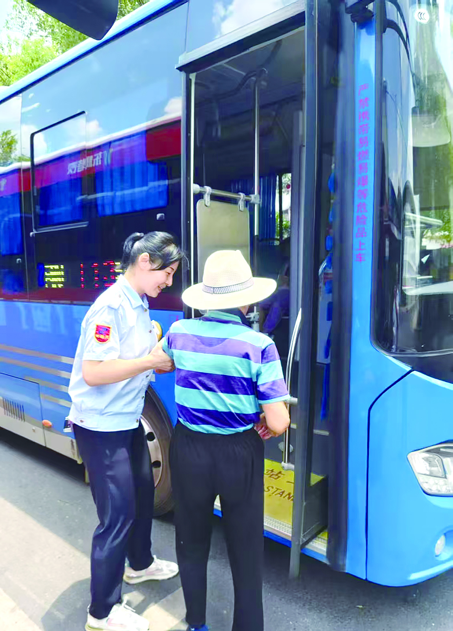 宾佩峰扶腿脚不便的老年乘客上车。 受访者供图