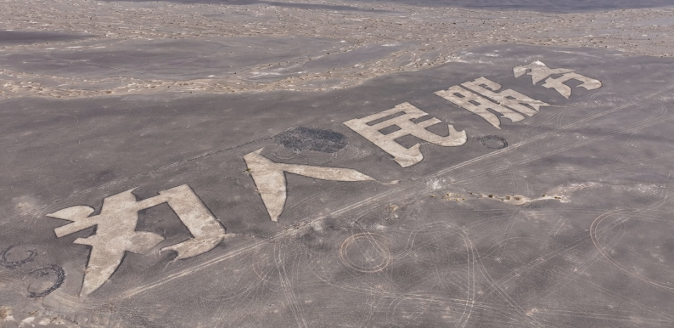 瞧,地上刻着的“为人民服务”,每个字都有6个篮球场那么大,气势恢宏。