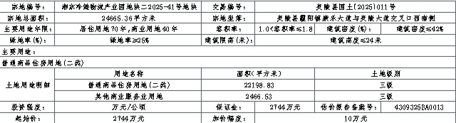 湘东冷链物流产业园地块二2025-41号地块:2025年11月20日08时00分至2025年12月01日09时00分;