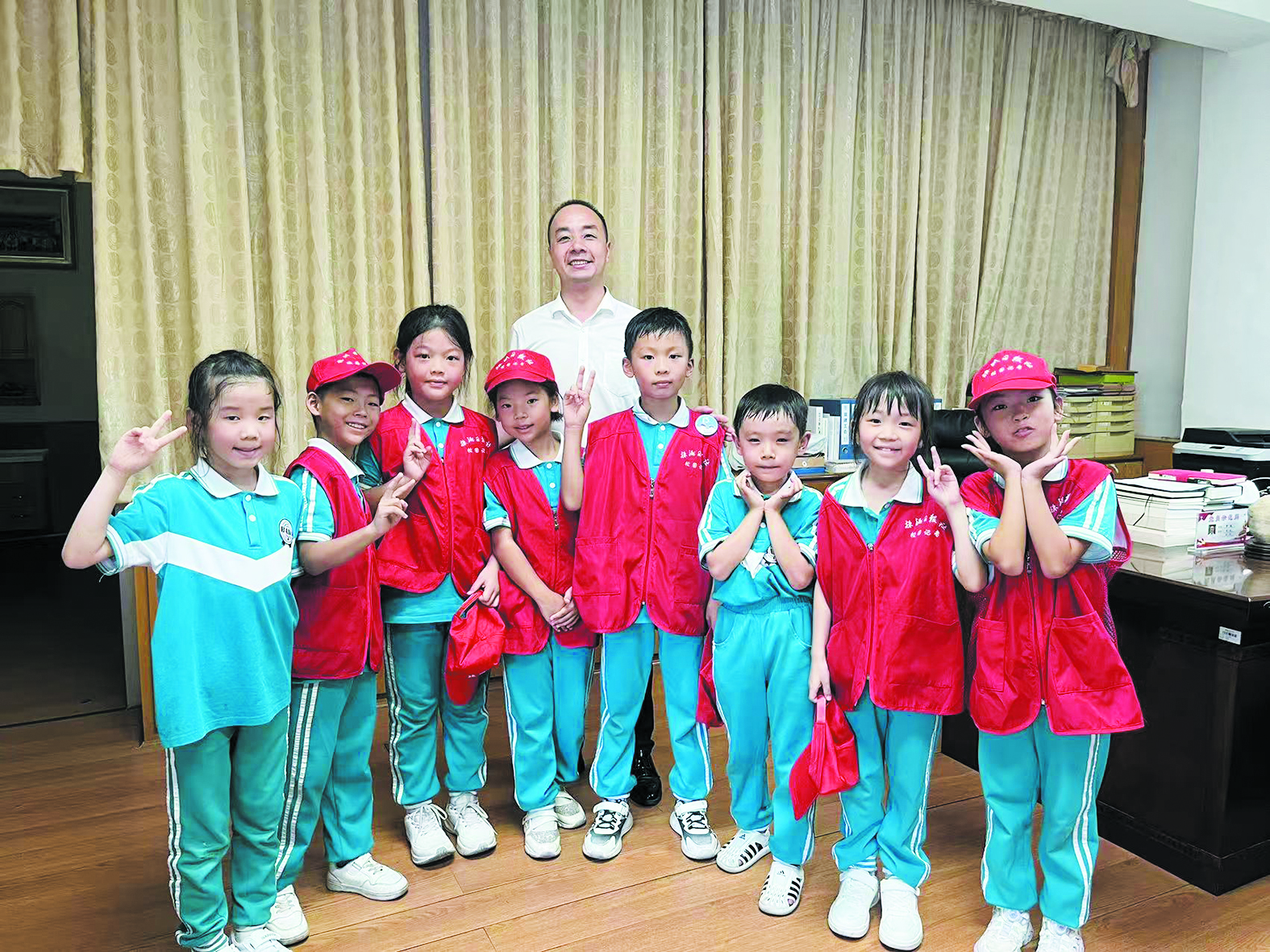 报道组小记者与罗敏校长合影。供图/谭肖潇