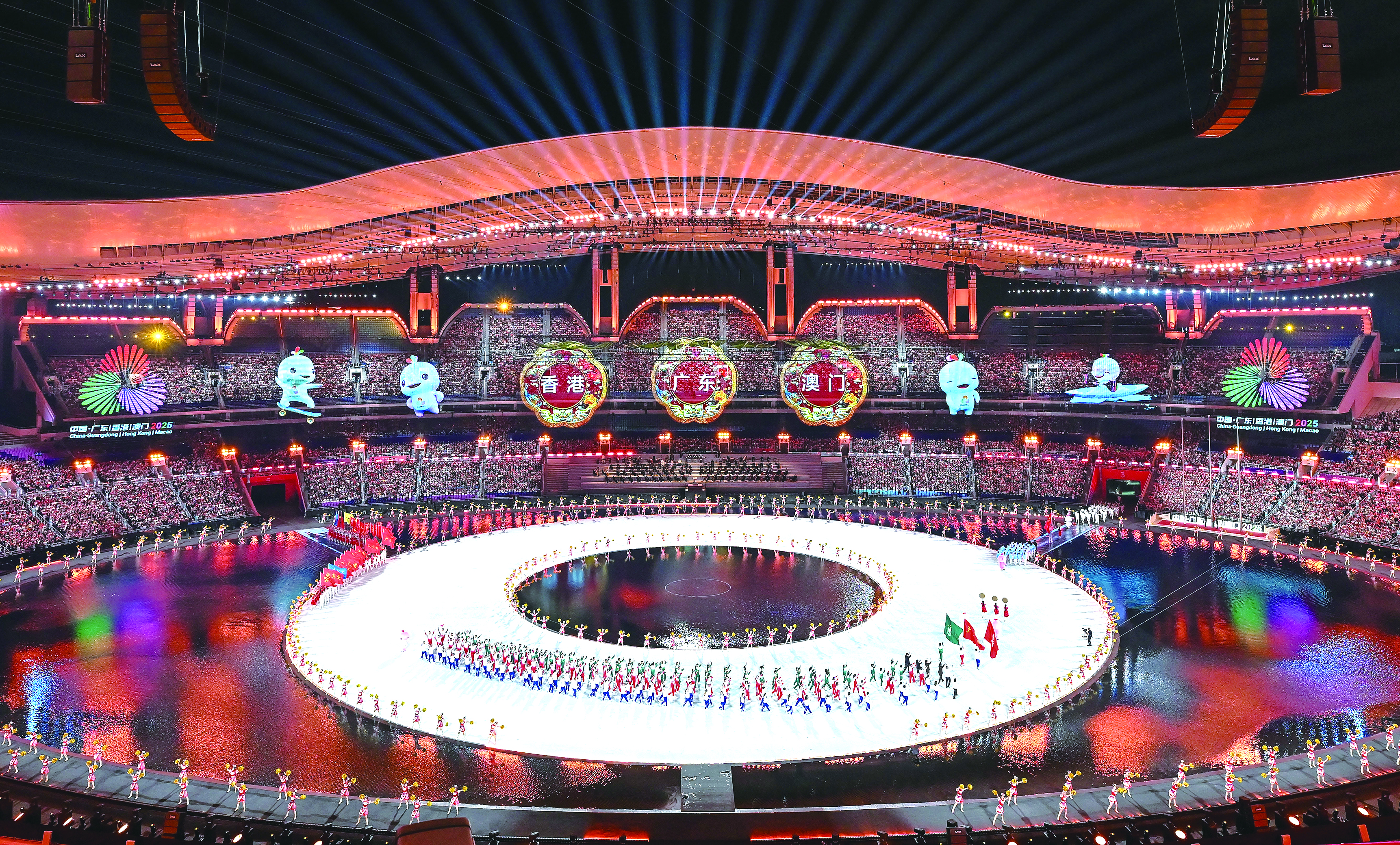 9日晚的广东奥林匹克体育中心华灯璀璨,气氛热烈。这是首次由粤港澳三地联合举办的全国运动会。