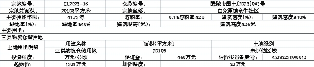 四、 本次挂牌出让的详细资料和具体要求,见挂牌出让文件。申请人可于2025年11月6日08时00分至2025年11月25日17时00分到湖南省(株洲市)国有资产资源交易平台(https://szjy.zzzyjy.cn:29091/portal/index)获取挂牌出让文件。