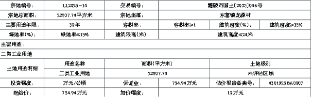 LL2025-14:(一)竞得者应在成交确认书签订之日起10个工作日内签订出让合同。(二)土地成交价款由竞得者在出让合同签订之日起180日内全额缴清,逾期未缴部分,根据相关规定,征收违约金。(三)由湖南醴陵经济开发区按现状条件交地,并承担因交地产生的相关法律责任。(四)须按醴陵市自然资源局出具的《东富工业园B-29地块用地性质认定蓝线图及规划条件》实施。