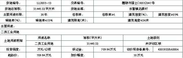 LL2025-13:(一)竞得者应在成交确认书签订之日起10个工作日内签订出让合同。(二)土地成交价款由竞得者在出让合同签订之日起180日内全额缴清,逾期未缴部分,根据相关规定,征收违约金。(三)由湖南醴陵经济开发区按现状条件交地,并承担因交地产生的相关法律责任。(四)须按醴陵市自然资源局出具的《东富工业园B-25地块用地性质认定蓝线图及规划条件》实施。