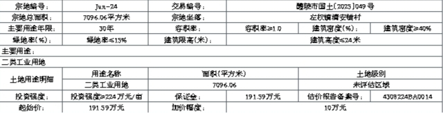 2024-06:(一)本项目实施“标准地”出让,固定资产投入强度≥224万元/亩,地均收入≥280万元/亩,地均税收≥20.4万元/亩。须按醴陵市自然资源局出具的《2023年第17批次建设用地B地块用地性质认定蓝线图及规划条件》实施。交地之日起3个月内须开工建设,18个月内须完成全部建设并投产。(二)竞得者应在成交确认书签订之日起10个工作日内签订出让合同。(三)土地成交价款由竞得者在出让合同签订之日起180日内全额缴清,逾期未缴部分,根据相关规定,征收违约金。(四)由湖南醴陵经济开发区交地,并承担因交地产生的相关法律责任。