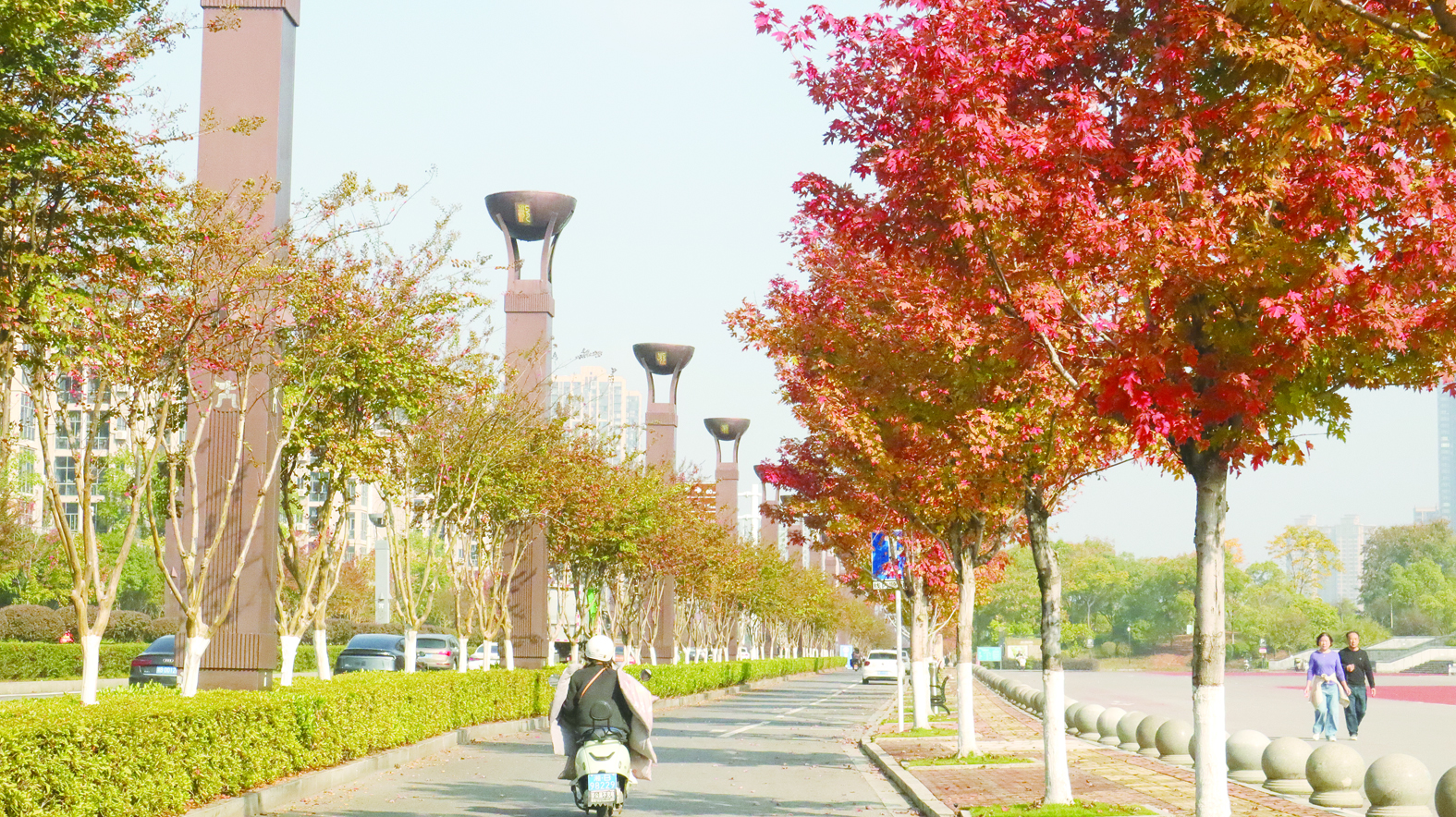 秋末冬初的株洲,宛如被施了魔法,悄然披上五彩霓裳。从庐山路的银杏大道到神农大道的红枫长廊,从人民路与湘水湾的梧桐秘境到珠江北路的栾树花雨,每一条特色景观街道,都是城市规划者与自然共生的智慧结晶,背后凝聚着基层园林工人多年精心养护的心血。