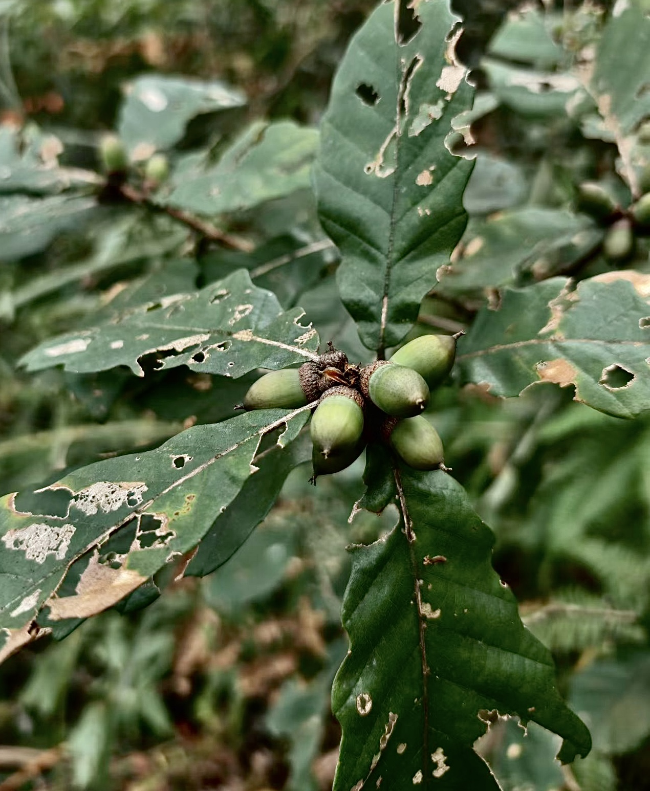 我10岁左右,先是在近处采,即采即吃。后随大人去离家稍远的地方采。第一次是和姑姑,在去东岭的老亭子东面,水田的附近采,毛栗球、茶叶树结的果一起采。再远是经东岭上山的猫牛坡,经西岭上山的推磨岭,或从北冲上去的山上。