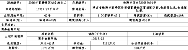 四、本次挂牌出让的详细资料和具体要求,见挂牌出让文件。申请人可于2025年11月11日08时00分至2025年11月30日17时00分到湖南省(株洲市)国有资产资源交易平台(https://szjy.zzzyjy.cn:29091/portal/index)获取挂牌出让文件。