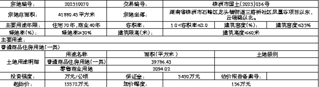 四、本次挂牌出让的详细资料和具体要求,见挂牌出让文件。申请人可于2025年11月11日08时00分至2025年11月30日17时00分到湖南省(株洲市)国有资产资源交易平台(https://szjy.zzzyjy.cn:29091/portal/index)获取挂牌出让文件。