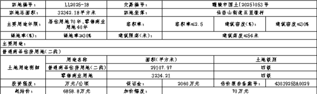 LL2025-18:(一)竞得者应在成交确认书签订之日起10个工作日内签订出让合同。(二)土地成交价款由竞得者在出让合同签订之日起一个月内缴纳出让金的50%,半年内缴清余款,逾期未缴部分,根据相关规定,征收违约金。(三)由醴陵市土地储备中心按现状条件交地,并承担因交地产生的相关法律责任。(四)须按醴陵市自然资源局出具的《醴陵市中心城区城镇开发边界内单元18-街区H地块01用地性质认定蓝线图及规划条件》实施。(五)该地块采取带抵押供应,抵押权人同意带抵押供应。