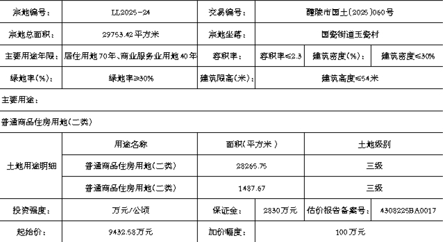四、 本次挂牌出让的详细资料和具体要求,见挂牌出让文件。申请人可于2025年11月13日08时00分至2025年12月02日17时00分到湖南省(株洲市)国有资产资源交易平台(https://szjy.zzzyjy.cn:29091/portal/index)获取挂牌出让文件。
