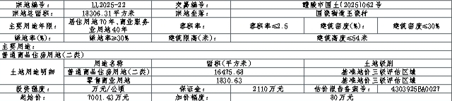 LL2025-22:(一)竞得者应在成交确认书签订之日起10个工作日内签订出让合同。(二)土地成交价款由竞得者在出让合同签订之日起一个月内缴纳出让金的50%,半年内缴清余款,逾期未缴部分,根据相关规定,征收违约金。(三)由醴陵市土地储备中心按现状条件交地,并承担因交地产生的相关法律责任。(四)须按醴陵市自然资源局出具的《醴陵市中心城区城镇开发边界内单元3-街区C地块01用地性质认定蓝线图及规划条件》实施。(五)该地块采取带抵押供应,抵押权人同意带抵押供应。