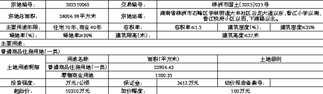 四、本次挂牌出让的详细资料和具体要求,见挂牌出让文件。申请人可于2025年11月11日08时00分至2025年11月30日17时00分到湖南省(株洲市)国有资产资源交易平台(https://szjy.zzzyjy.cn:29091/portal/index)获取挂牌出让文件。