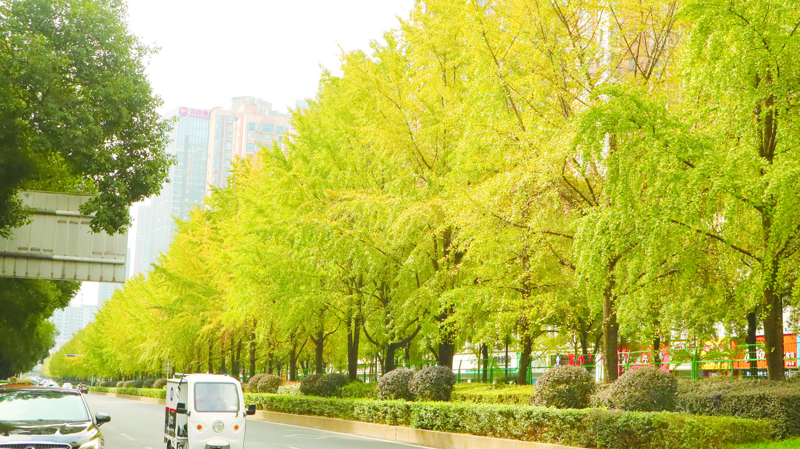 庐山路的银杏即将进入最佳观赏期。 记者/肖星平 摄