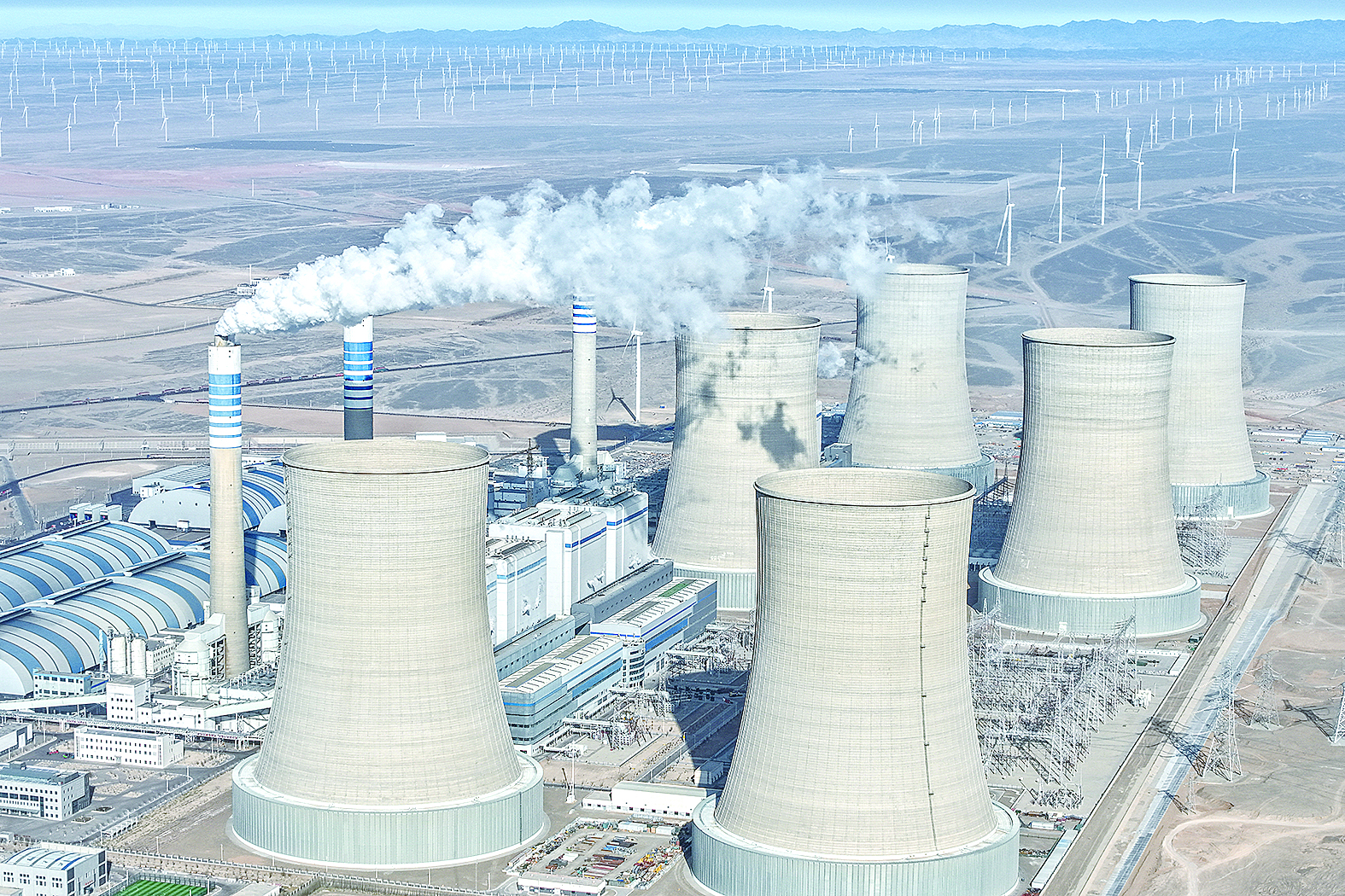 这是11月19日在甘肃省酒泉市瓜州县拍摄的甘肃电投常乐电厂外景(无人机照片)。