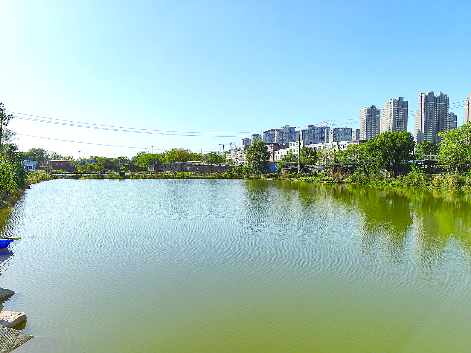 经过整治,株雷路旁的池塘已经由黑复绿。 记者/张威 摄