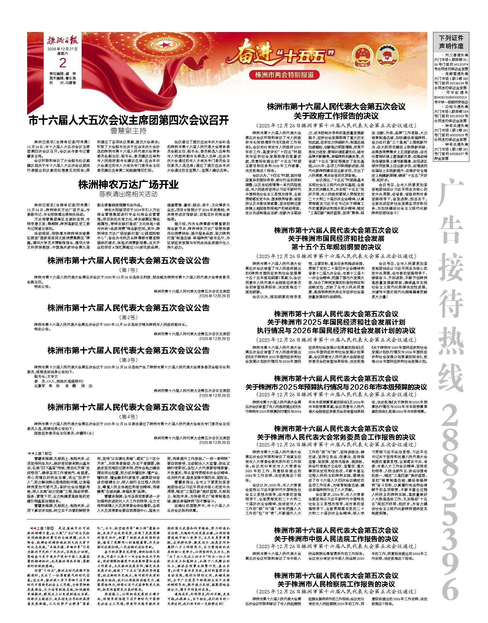 2025年12月27日《株洲日报》