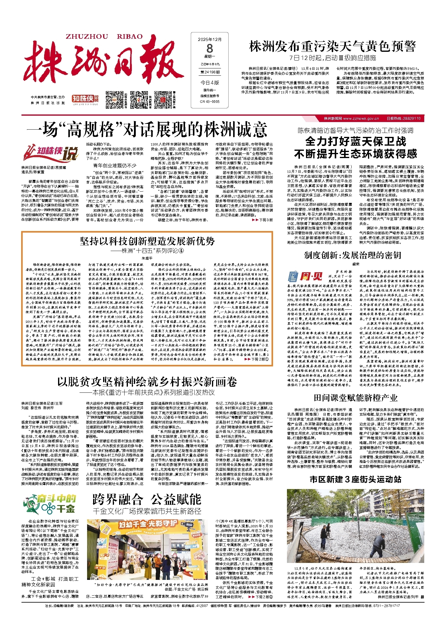 为有效降低污染物排放,最大限度改善环境空气质量,保障群众身体健康,根据《株洲市重污染天气应急预案》规定和区域联防联控要求,发布我市重污染天气黄色预警,自12月7日12时00分起启动重污染天气Ⅲ级响应措施,解除时间根据省、市会商研判结果另行通知。