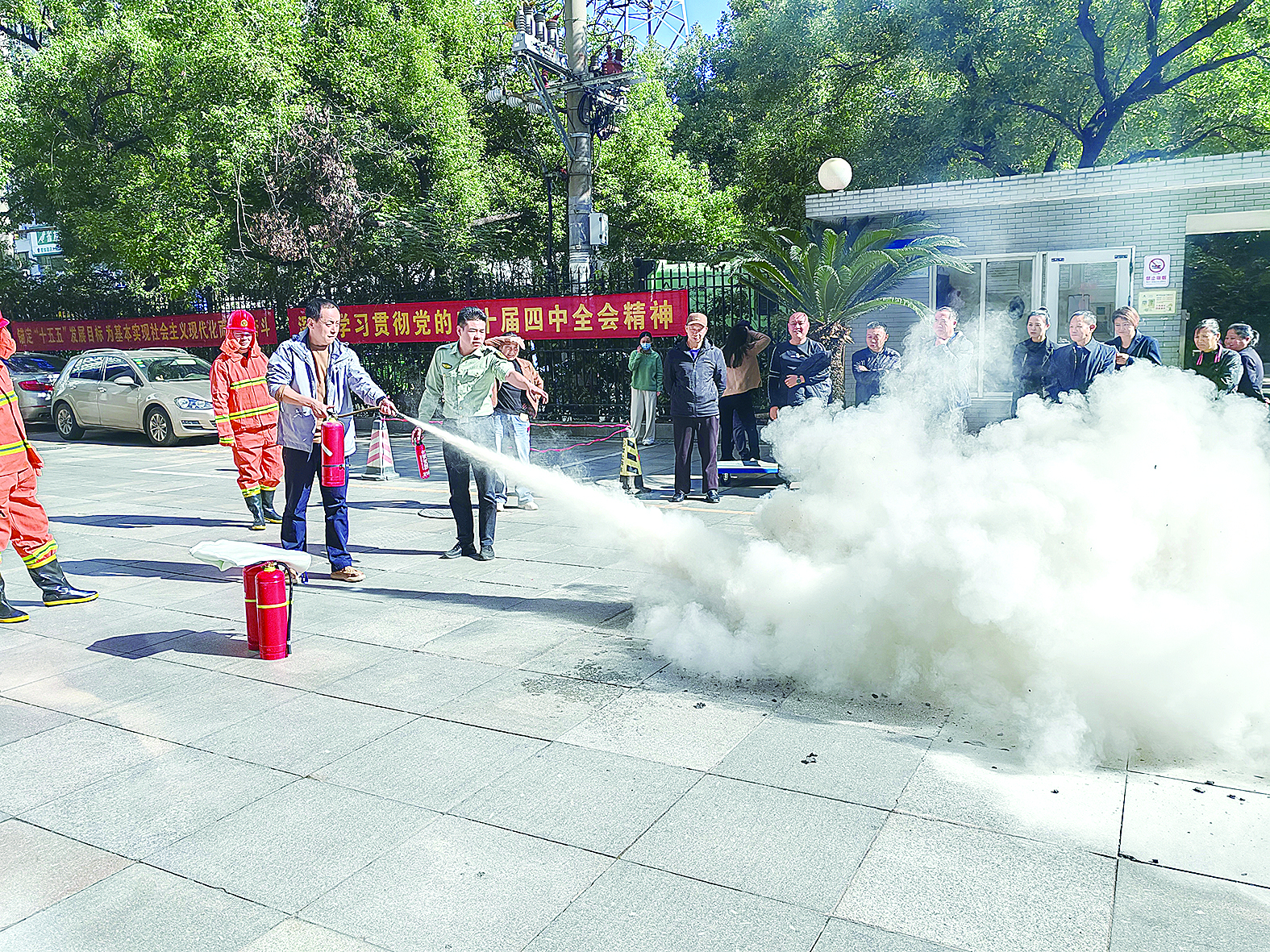 演示消防器材的正确使用方法。 通讯员 供图