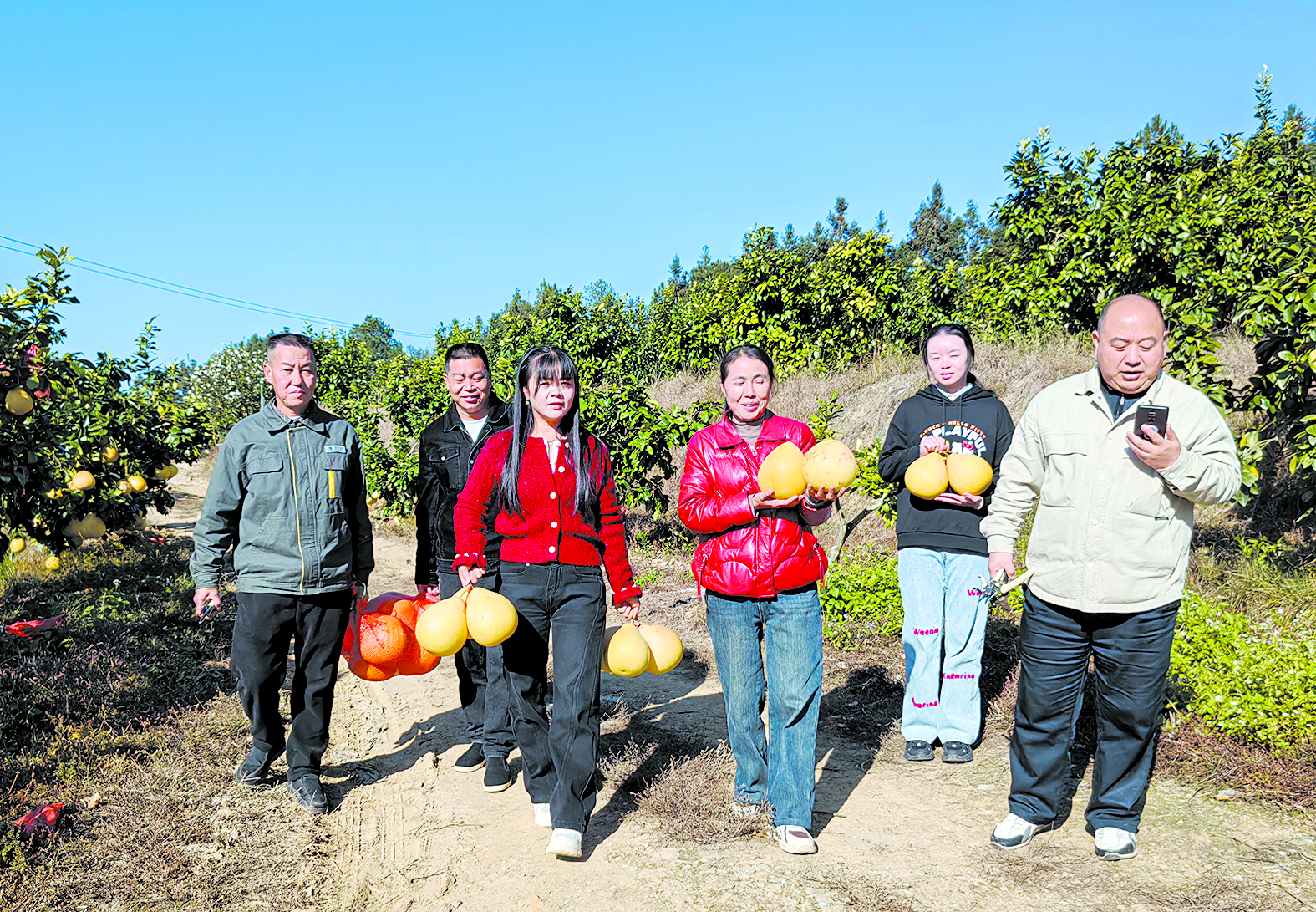 看到村民心急如焚,市人社局驻北斗村工作队制定了营销计划,一是市人社局干部职工主动认购,二是让干部职工通过朋友圈、抖音、小红书等平台宣传推销北斗村的柚子,三是干部职工利用自身资源对接商超、企业食堂进行推销。