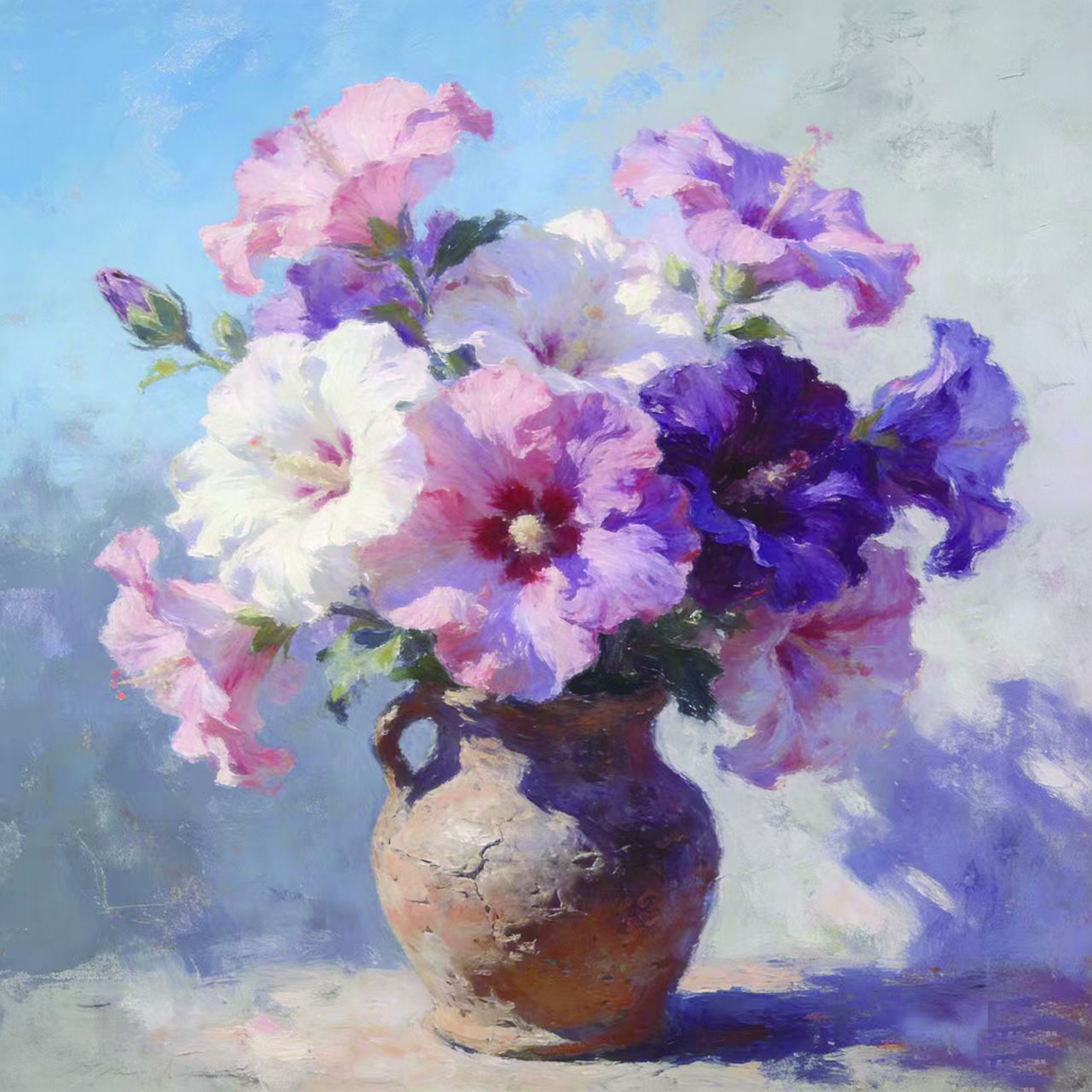 木槿花有各种颜色,老家那边的以白中透紫的为多,花期特别长,开起来灿烂而繁复,也有温婉简约的风姿。木槿花既有药用价值,也是美味的食材。