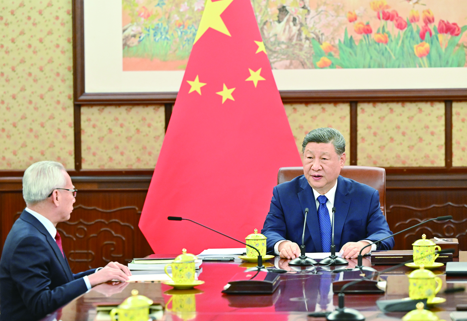 12月16日,国家主席习近平在中南海会见来京述职的澳门特别行政区行政长官岑浩辉。新华社记者/殷博古 摄