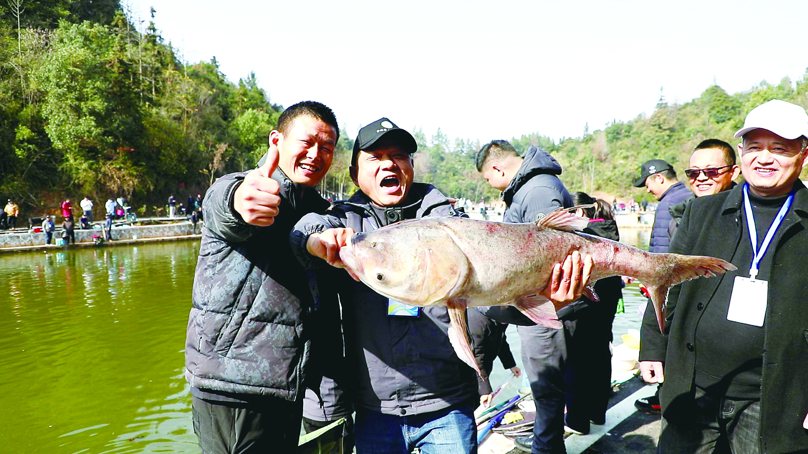 比赛选手开心展示“鱼王”。通讯员/刘旺 摄