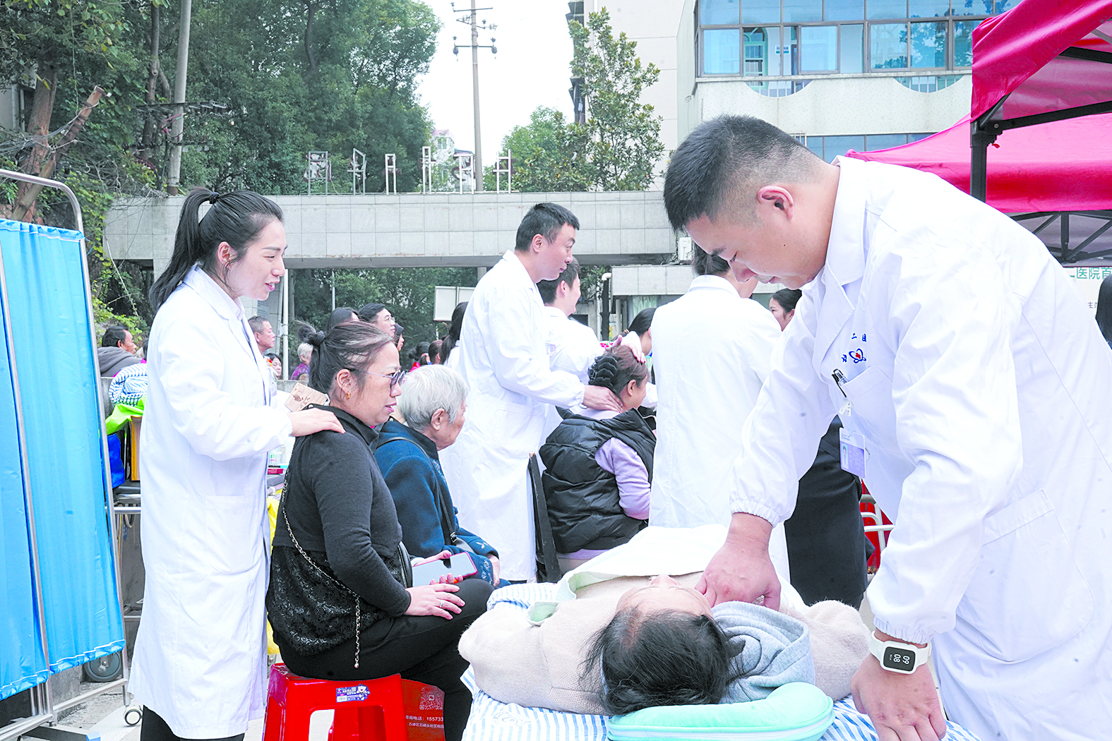 ▲市二医院的医生为群众提供诊疗服务