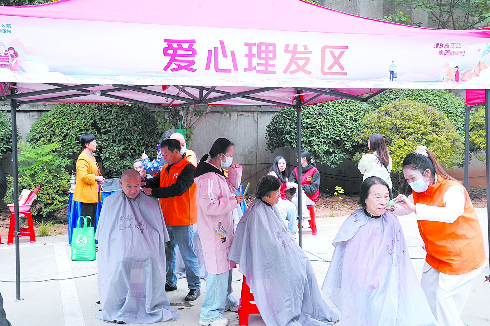 ▲“老年集市”上的爱心理发区