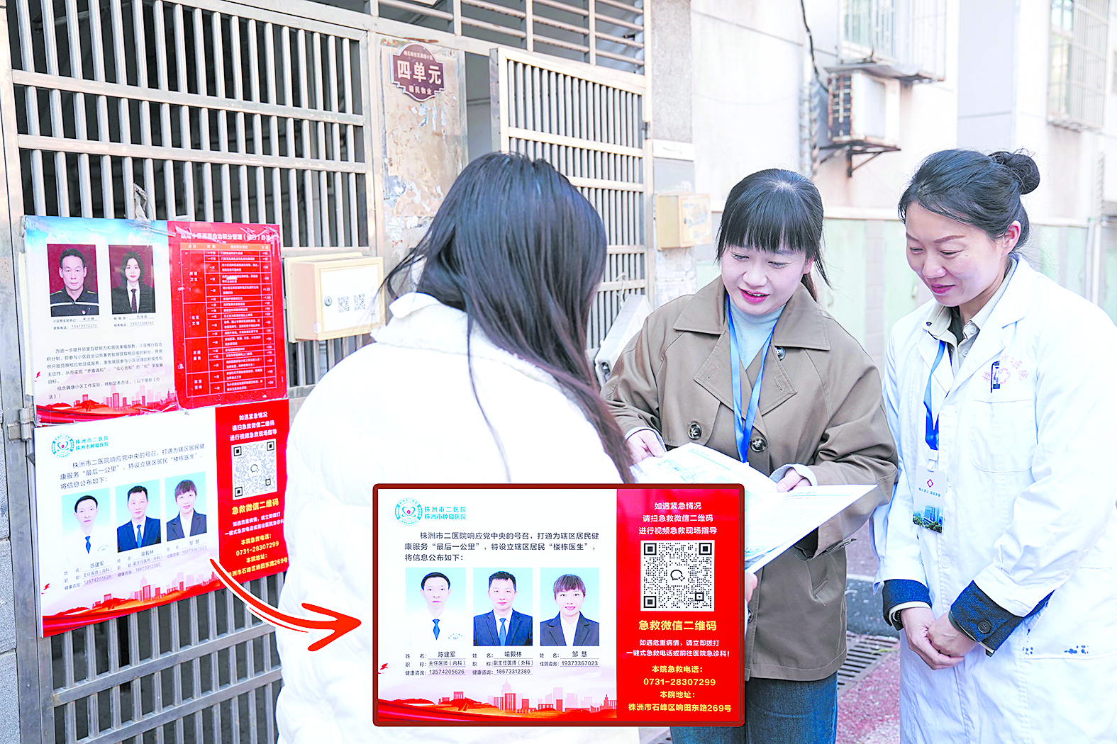 党建延伸社区,打通健康服务“最后一步路”。让优质医疗资源下沉,是公立医院公益性的体现,更是党建工作的出发点和落脚点。株洲市二医院创新推出的党建引领——“健康邻距离”楼栋医疗管理项目应运而生。项目以“家门口的医生 零距离的关爱”为宗旨,在城市医联体单位辖区,组建了由医疗专家、社区医生、外联办人员组成的楼栋家庭医生团队,其中党员充当主力军。