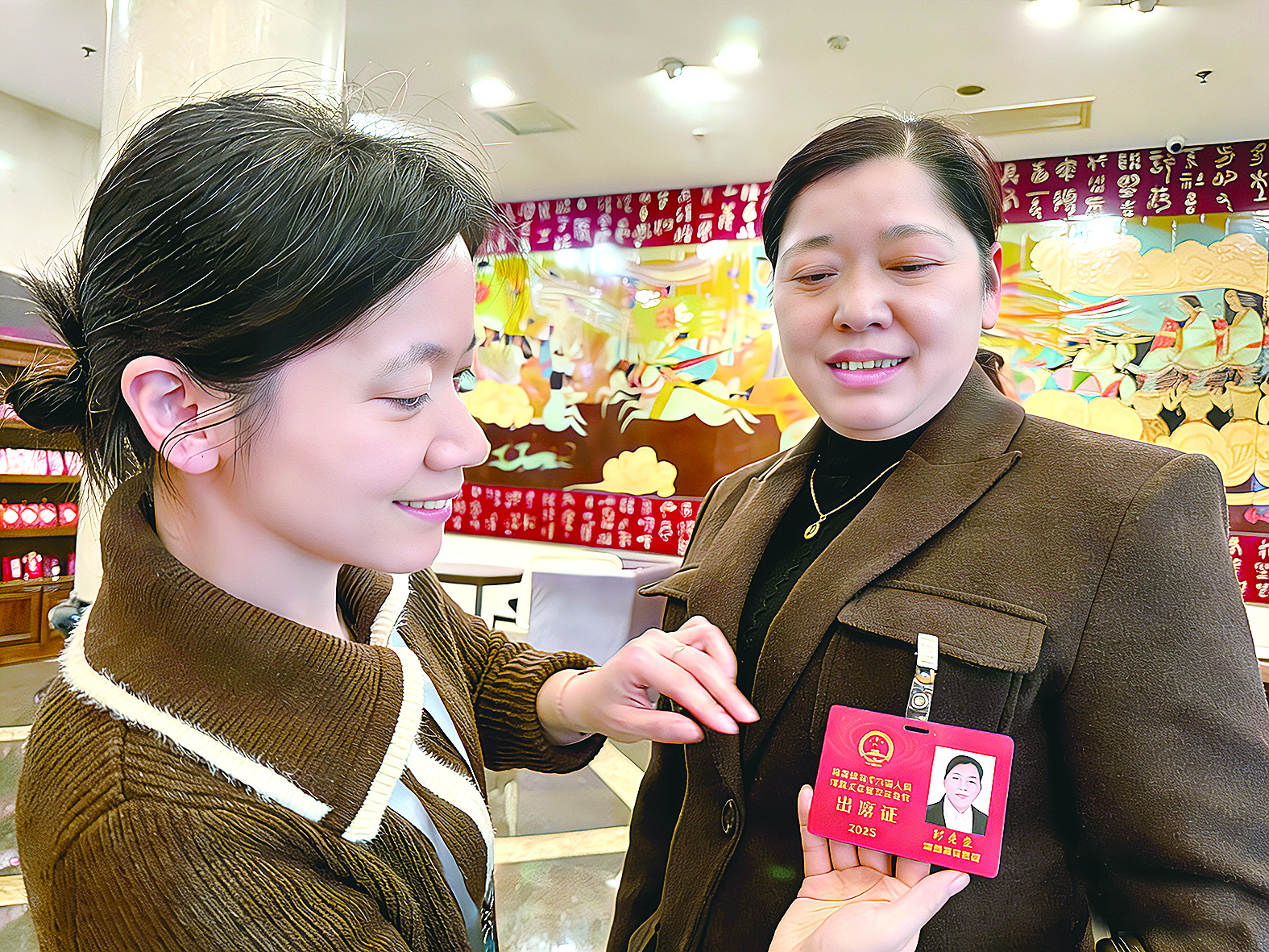 工作人员为代表佩戴出席证。 株洲日报全媒体记者/张媛 摄