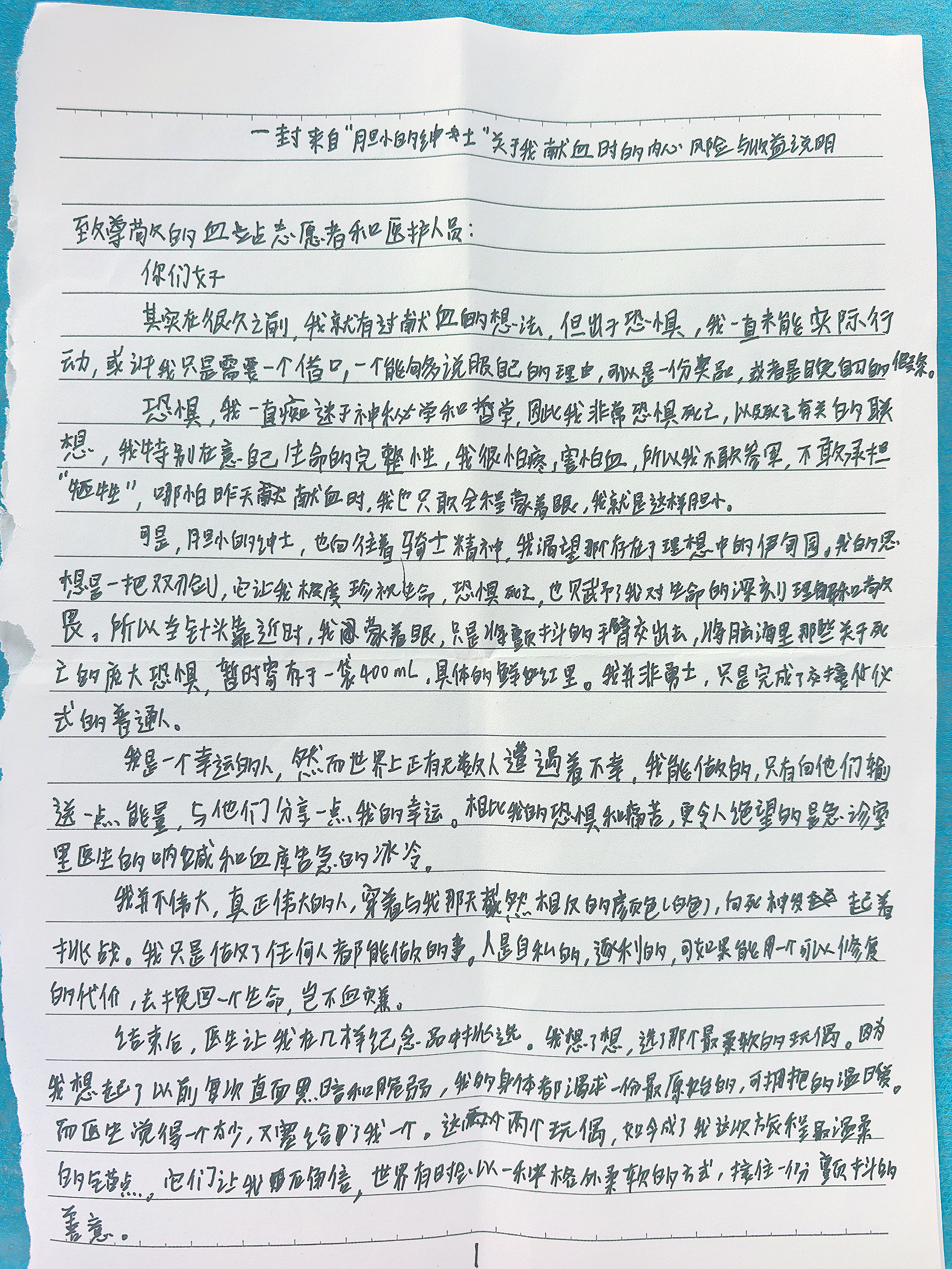 这封信在血站内部传阅,工作人员久久不能平静。他们每日见证无数献血者,但这份清晰的颤抖,格外动人。
