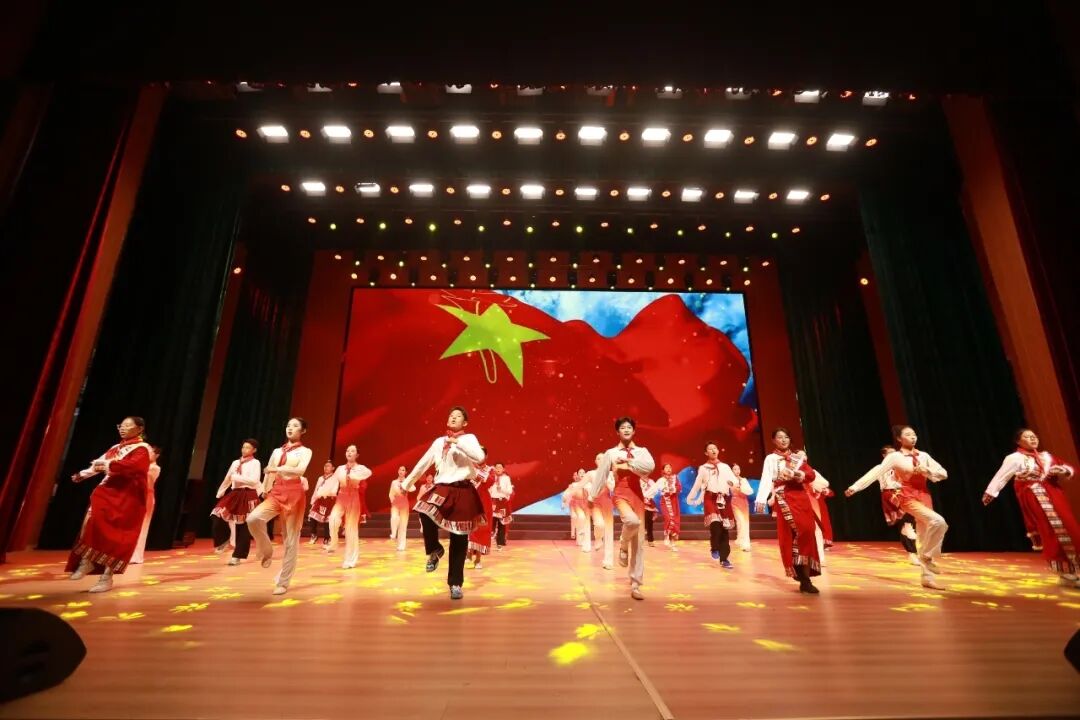 藏族汉族学子共同表演节目《同在灿烂阳光下》。 通讯员 供图