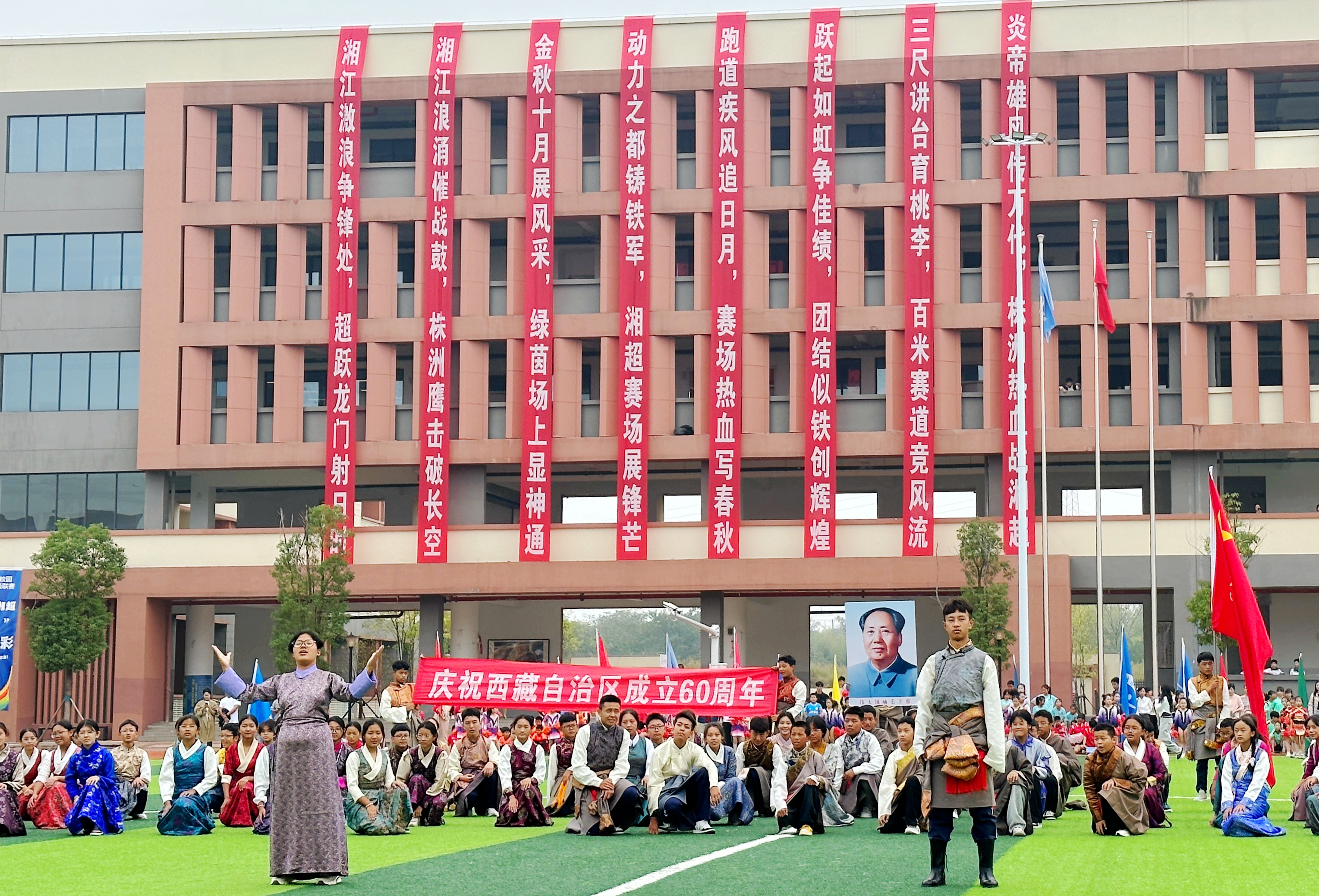 今年2月28日,藏历新年文艺活动上,师生手拉手围成大圈跳起锅庄舞,齐声喊出“罗萨扎西德勒”的祝福。时任株洲第十批援藏工作队队长、扎囊县委常务副书记、常务副县长覃志名受邀到场,分享援藏感悟并承诺持续助力西藏教育事业。