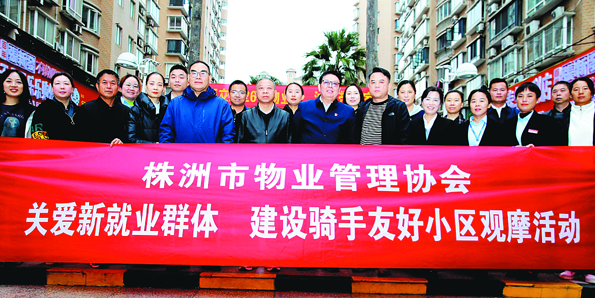 11月20日,株洲市物业管理协会组织部分物业企业代表到湘银小区、中瑞花园、财富湘江小区开展骑手友好小区建设观摩活动,交流经验,共同提升友好小区建设水平。 通讯员 供图