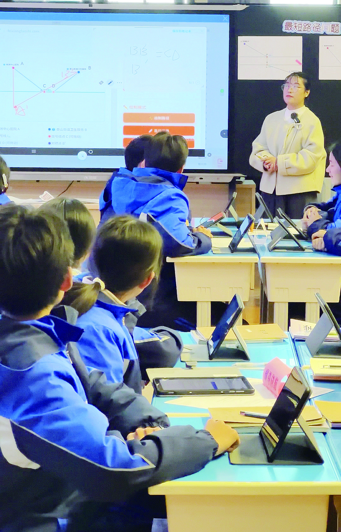 学生通过平板互动答题,现场批改分析。 记者/戴凛 摄