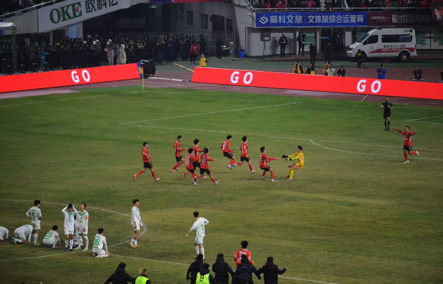 料峭轻寒的冬夜里,4万人座的体育场中,有两首旋律不绝于耳,一首是株洲队的加油战歌,一首是《生命之杯》。穿越的世界杯主题曲与株洲本土的球迷拉拉队歌水乳交融,看台上数十米的炎帝巨幅tifo烈烈招展,三湘第一魔鬼主场的奇迹绽放在湖湘大地。这座城的人们歌颂胜利,渴望跨过从体育中心到贺龙体育场的59公里,成就最后的狂欢。也能跨越失败,披荆斩棘,成就此心安处是吾乡的豁达。这不是一场只争输赢的竞技,更多的,是一座城、一支队、一条心的自我表达。