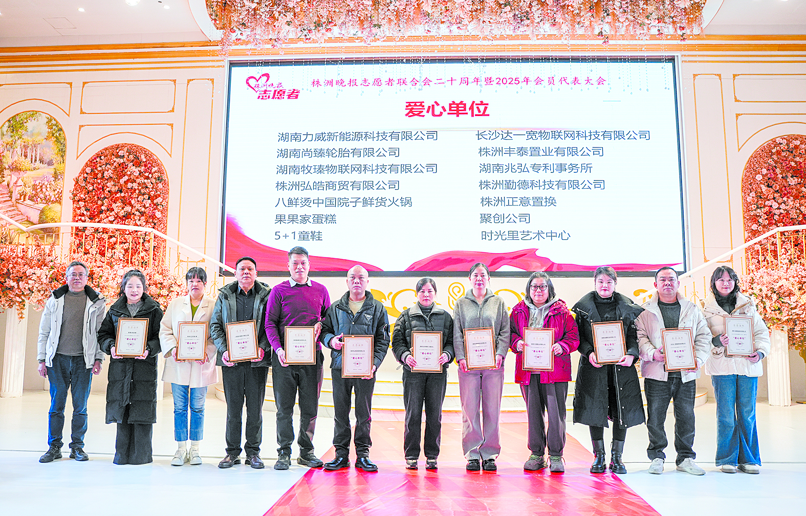 2026年1月4日,株洲晚报志愿者联合会召开20周年暨2025年度会员代表大会。大会对成立以来长期奉献的优秀志愿者、团队及2025年度表现突出的先进典型予以表彰。他们用行动诠释担当,以坚守传递温情,是这座城市最动人的风景线。