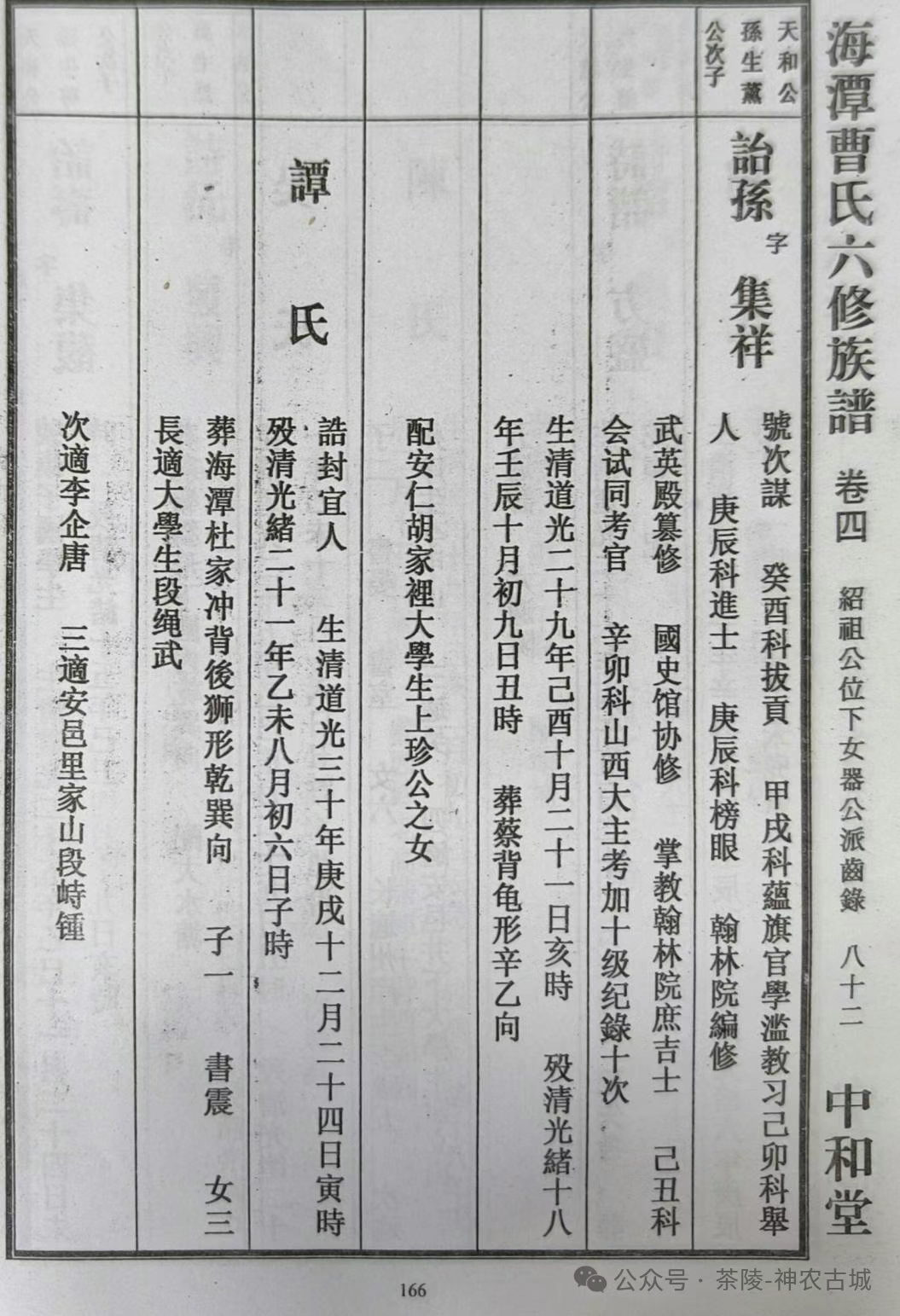 ▲《海潭曹氏六修族谱》中曹诒孙的介绍
