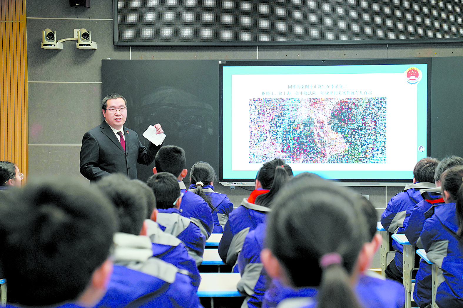 课堂上,检察官结合《治安管理处罚法》的最新修订内容,重点介绍了校园欺凌、网络行为规范等与青少年密切相关的法律规定,并通过真实案例深入浅出地阐释了《未成年人保护法》中关于校园安全、网络保护等重点条款。
