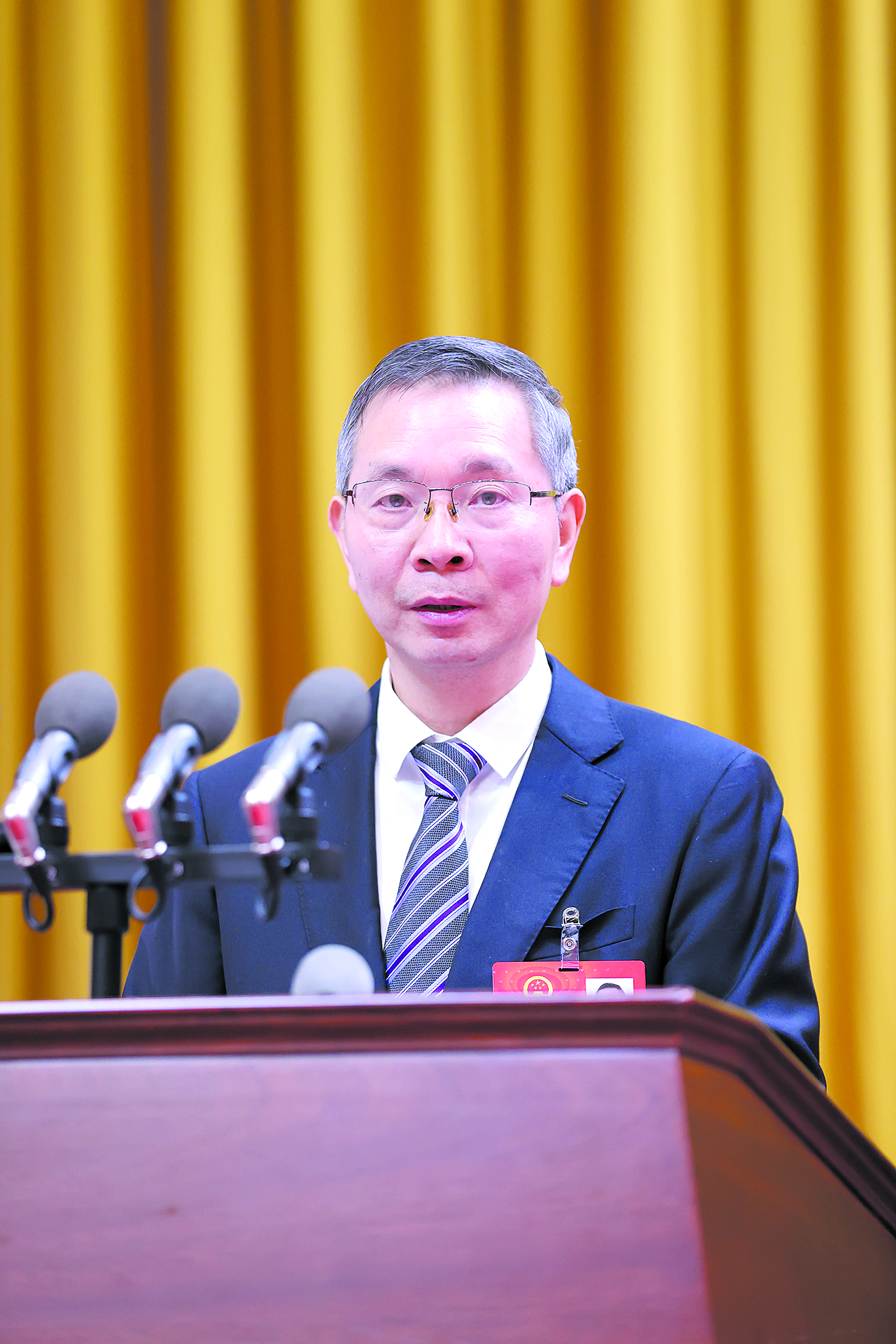 在株洲市第十六届人民代表大会第五次会议上,陈恢清作政府工作报告。 株洲日报全媒体记者/谢慧 摄