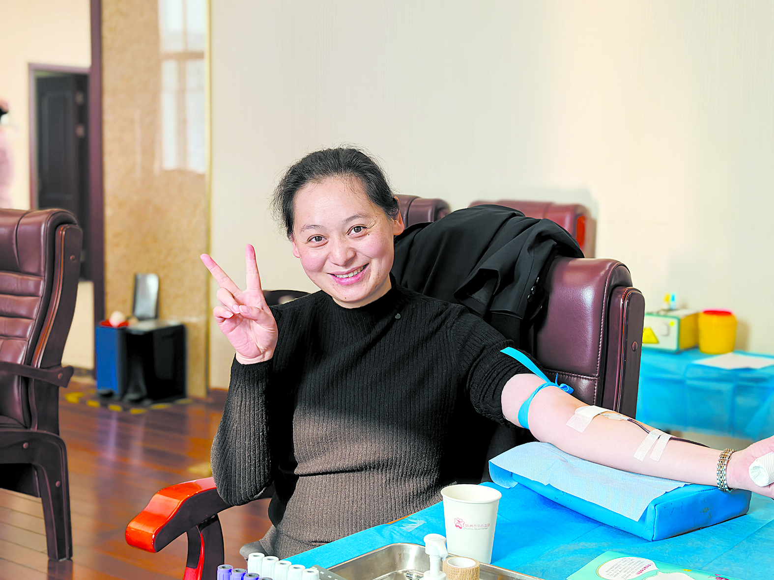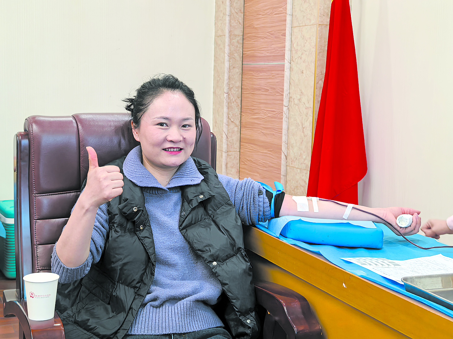 长跑爱好者杨柳已是第四次献血,她一边捋起袖子一边轻快地说:“空腹我都能跑15公里,献血对我来说当然没问题!只要身体允许,我就会一直来。”她的“献血搭子”彭晓在一旁微笑点头,说:“献血既能帮助别人,也让我感觉身体轻盈。其实只要迈出第一步,了解了,肯定就会有第二次。”