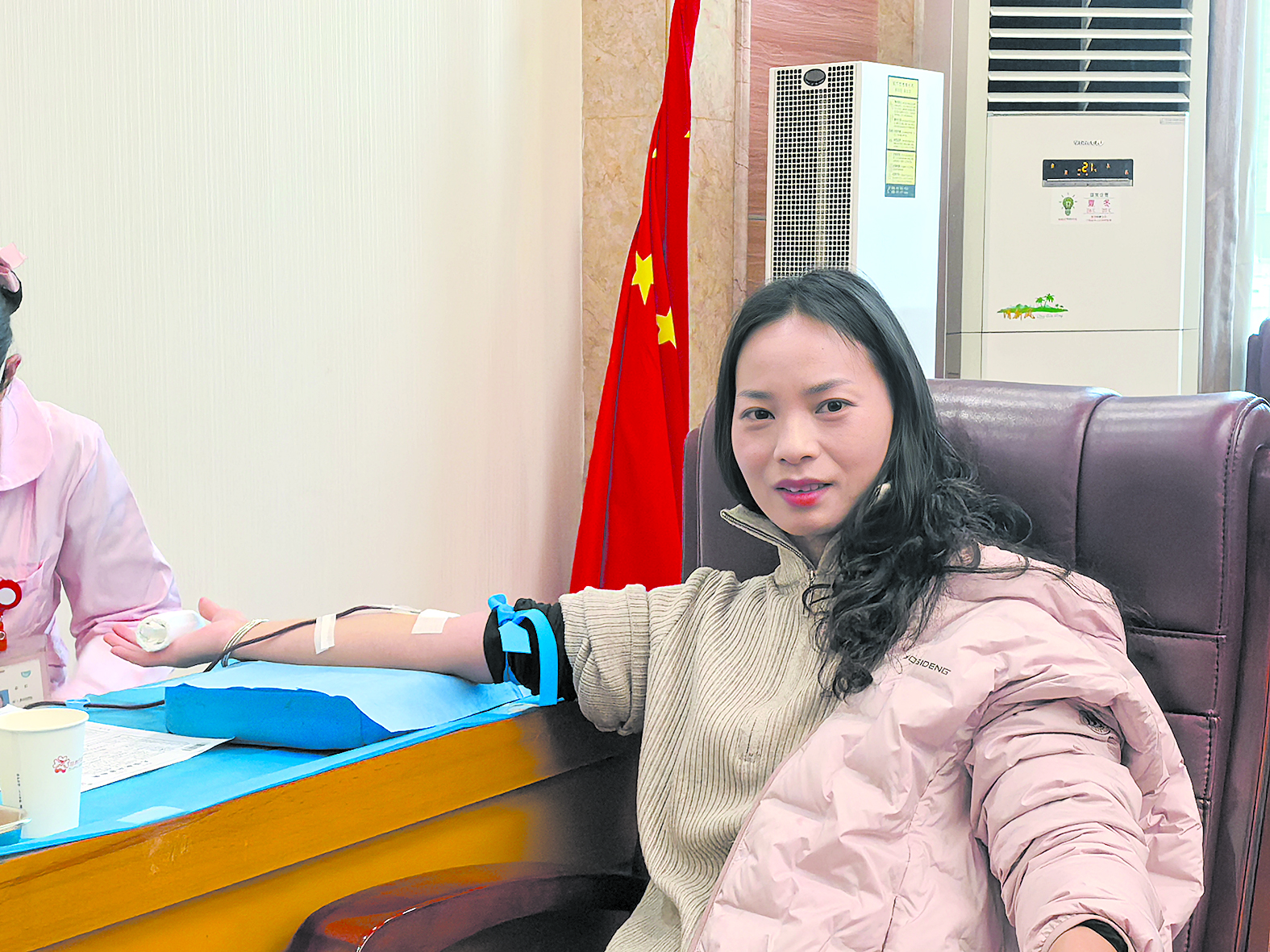 ▲杨柳正在献血。通讯员 供图
