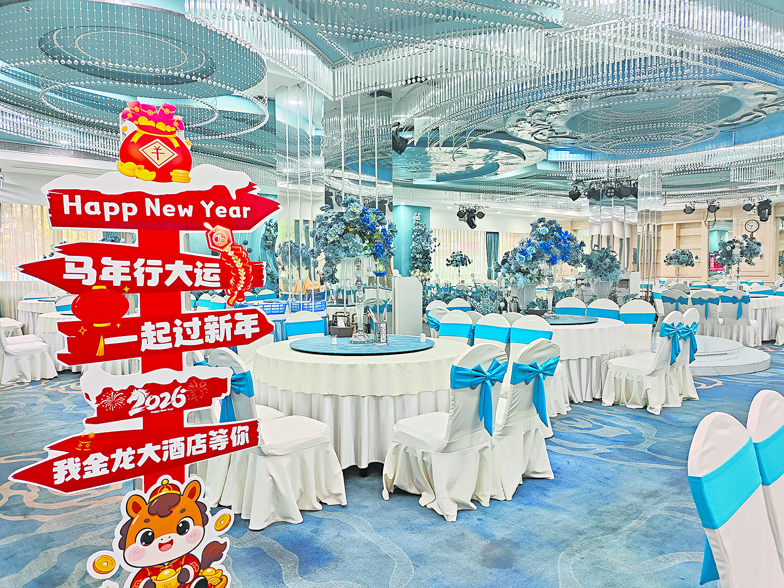 逸景大酒店同样精心策划了系列活动:财神爷门口迎接,进门赠送喜庆围巾和红包糖果,用餐时每个包厢可参与抽奖,一等奖得主将获得688元现金福利。酒店还将播放氛围音乐,营造温馨热闹的过年氛围。