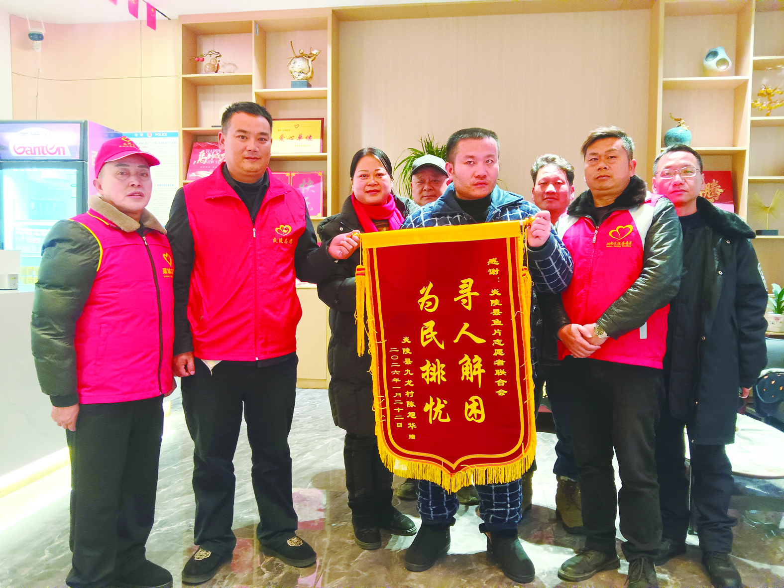 事后,陈刚亲属特意送上三面锦旗,致谢三地公益组织与相关部门。
