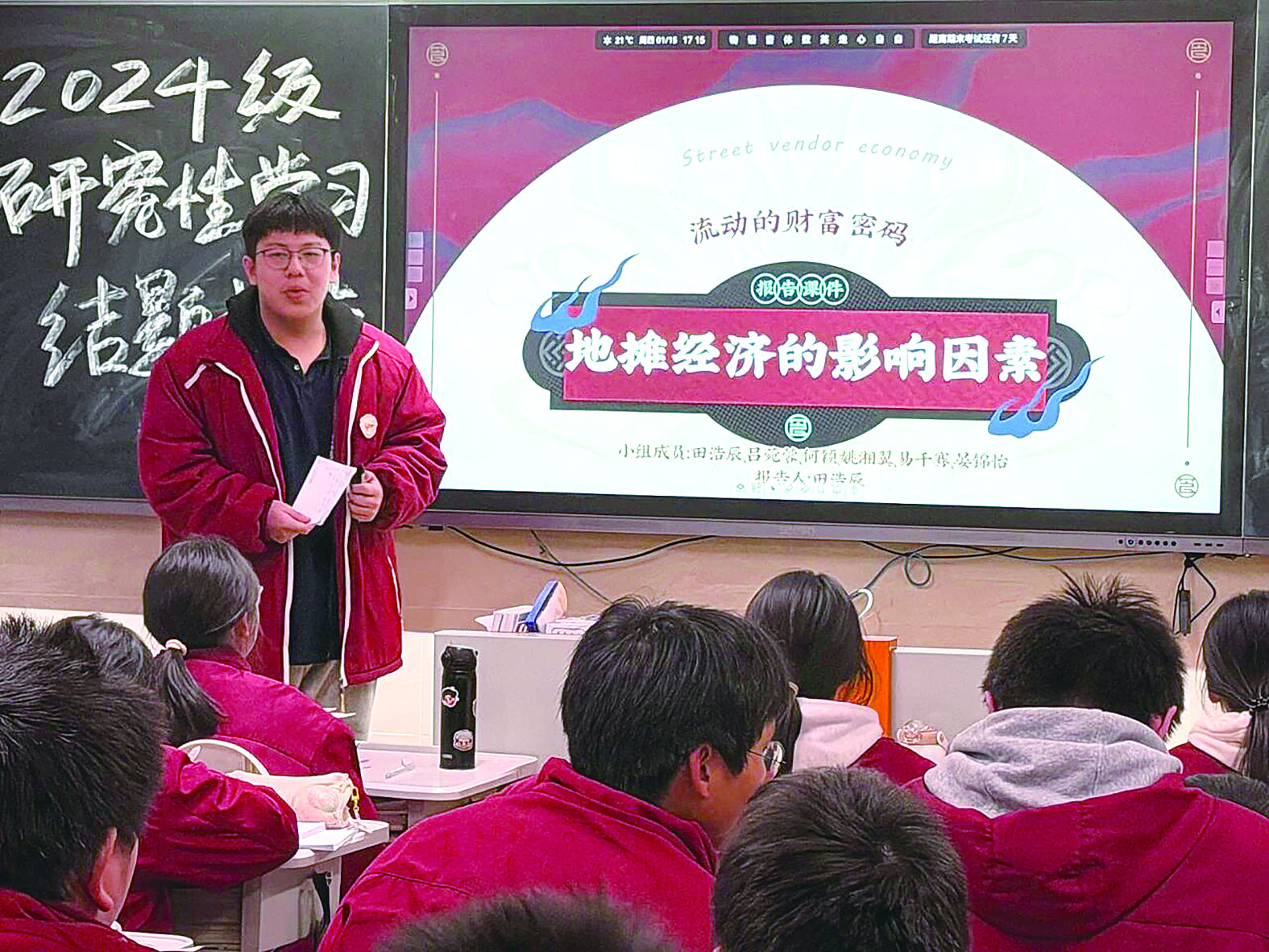 学生分享地摊经济相关调研报告。 记者/戴凛 摄