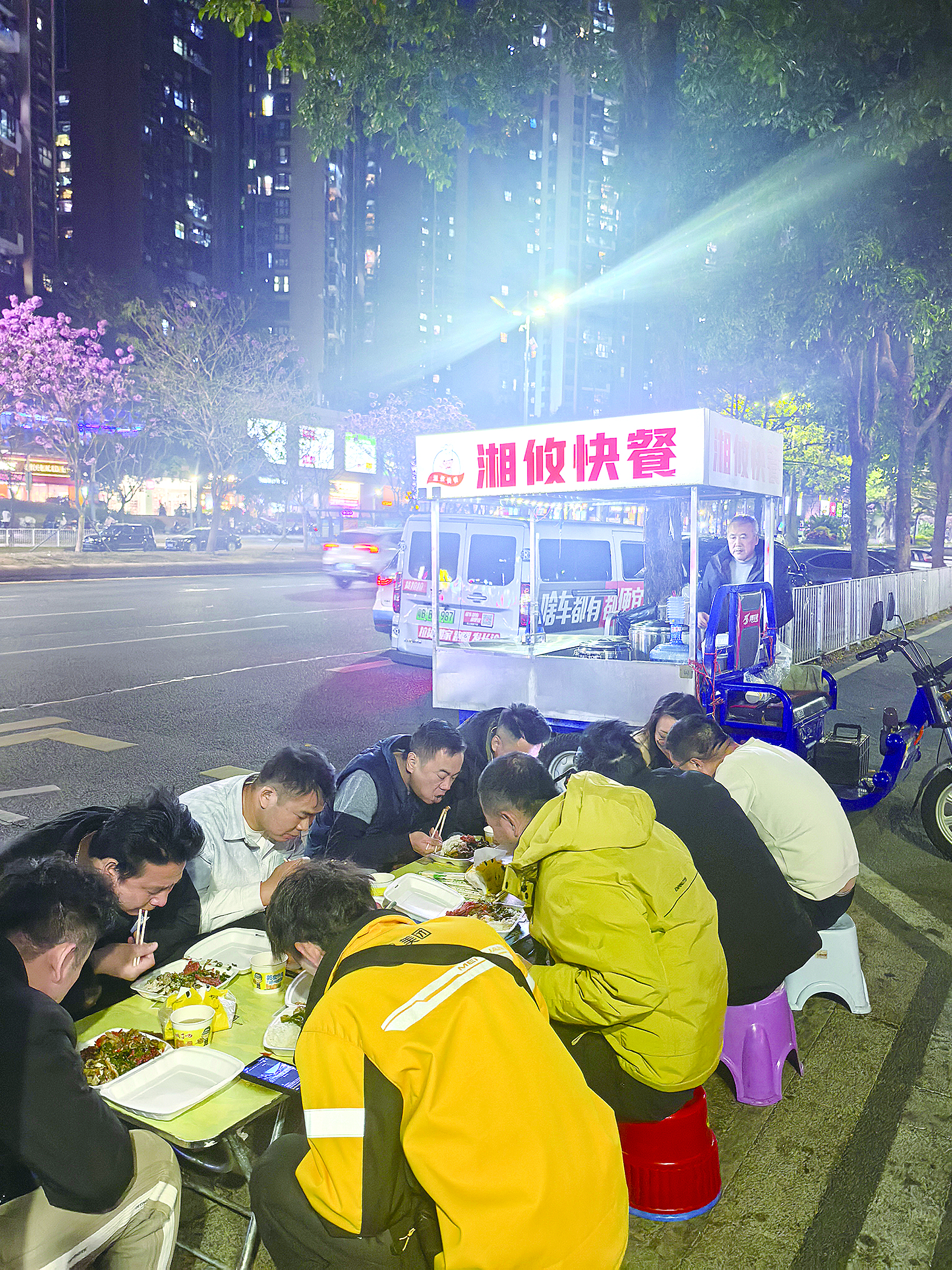 2025年4月,王国凤带着老伴从株洲攸县老家来到深圳,摆起了这个专为深夜劳动者开设的小摊。“来的大多是的哥、快递员、外卖小哥,他们忙到半夜,就想吃口热饭。”老人的话语带着浓重的乡音。
