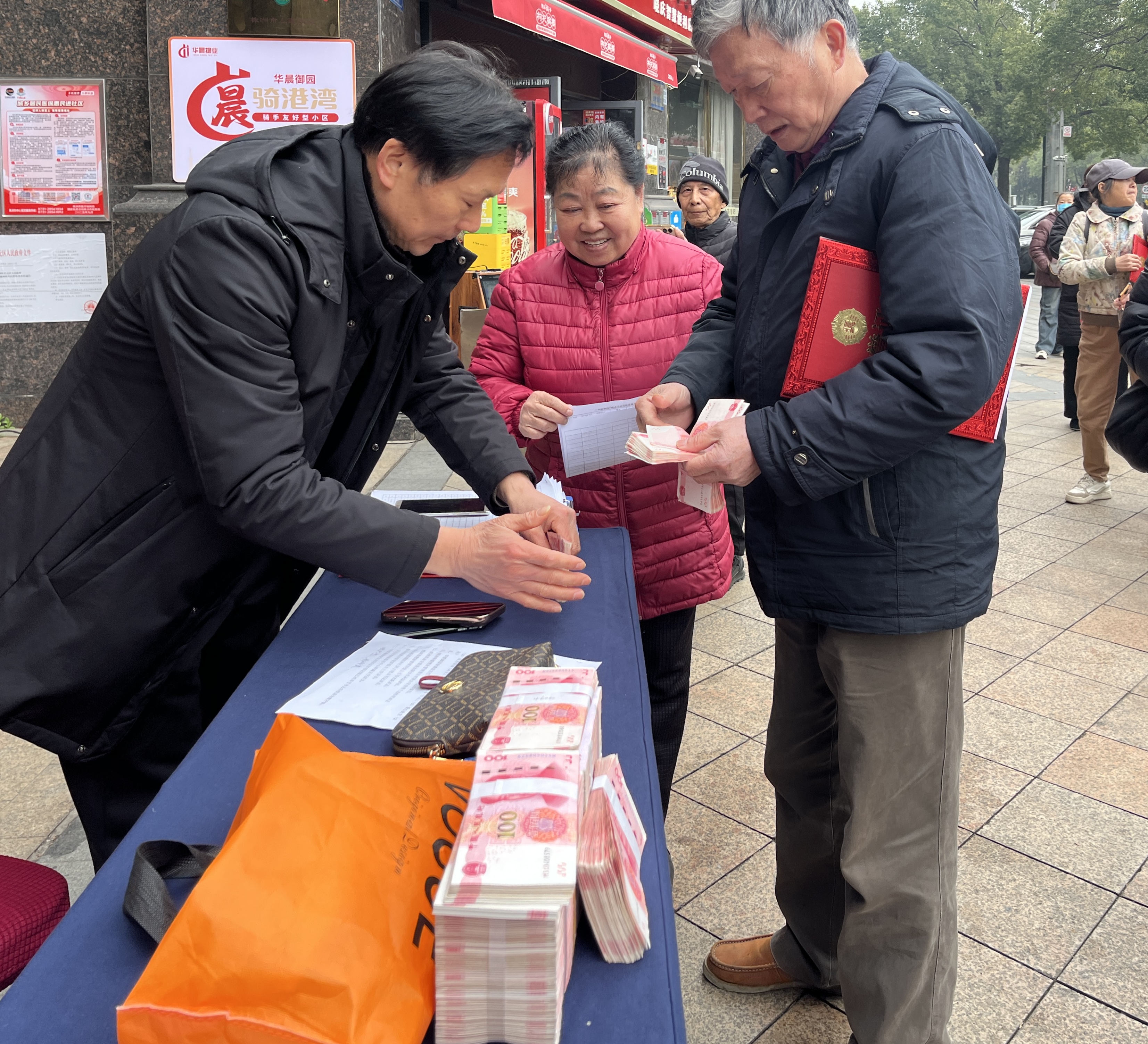 活动现场,楼栋长在领取公共收益资金。 记者/刘平 摄