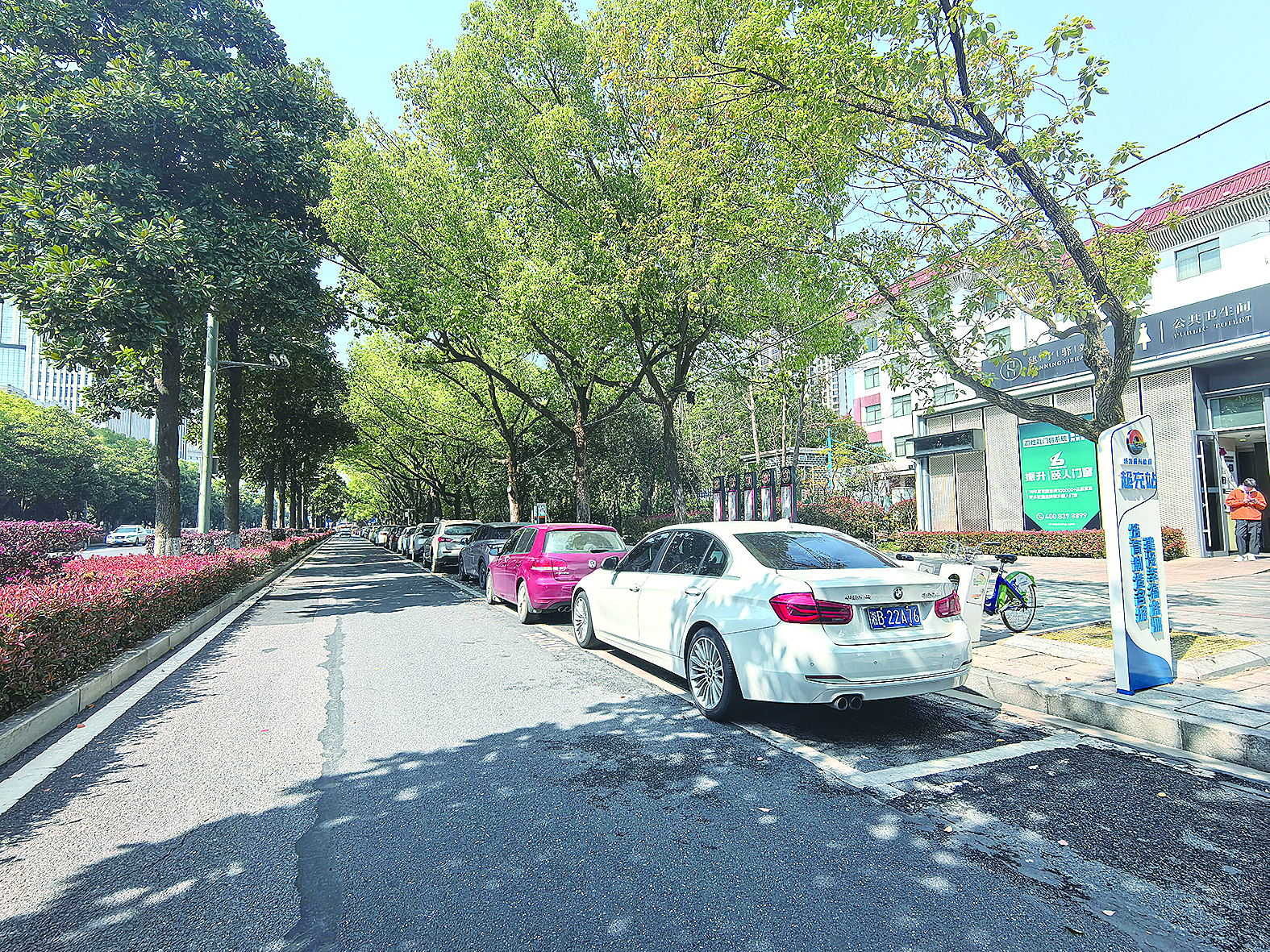 天元区天台路旁,车辆停放在道路停车泊位上。 (资料图)